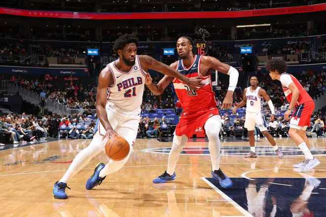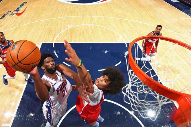 76人:恩比德复出23分钟3记三分25分7篮板5助攻,乌布雷17分11篮板,埃奇库姆4记三分14分6篮板4助攻,马克西39分10助攻,格莱姆斯23分,博纳2分5盖帽。